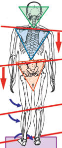 Orthotics are necessary when the arch of the foot pronates (drops, falls, flattens…), and the mechanics of the foot rotates the lower leg, and the upper leg. The pelvis is also torqued and one side “drops” (see picture). This can cause serious mechanical stress throughout the joints of the lower extremities, the pelvic and thespine (even up to the neck!).